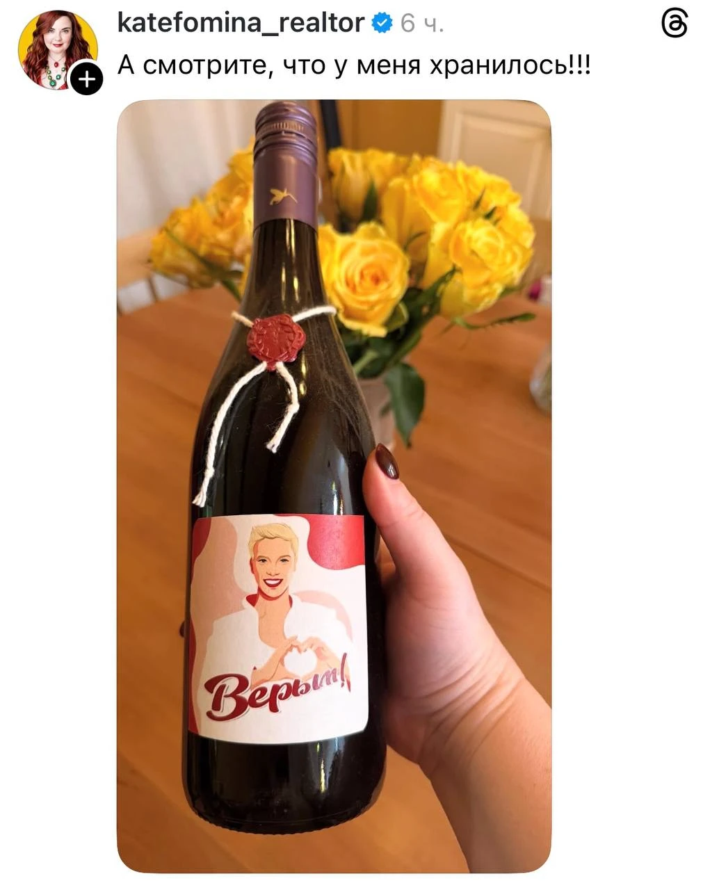 Одна беларуска поделилась фотографией бутылки вина с изображением Марии Колесниковой.