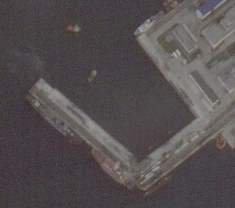 Проверить это трудно, но взрыв был в районе кормы субмарины, где находятся ее рули, пишет BBC. Вот коммерчески доступный спутниковый снимок, сделанный 5 декабря. На нем хорошо видна подводная лодка возле причала.